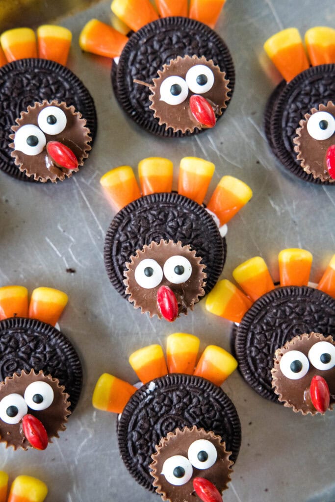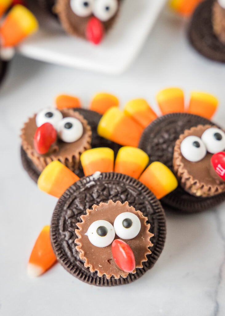 These Oreo Turkey Cookies are so fun and easy for Thanksgiving! No baking, mixing or even measuring required. Just 10 minutes and they are done!