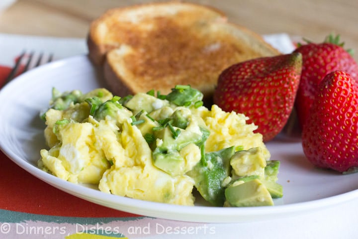 - Add the avocado, and continue stirring until the eggs are fully cooked.