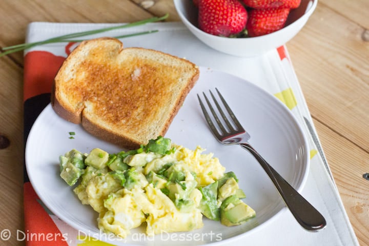 So if you are looking for a new way to mix up your breakfast this is it! I know avocado toast is the new thing, but serve your scrambled eggs and avocado on a piece of toast and call it good.