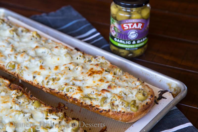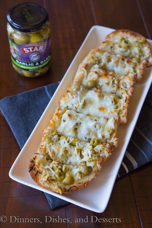 I love the briny kick that the olives add to the classic flavor of this garlic cheese bread. It was really good with the lasagna I made last night!