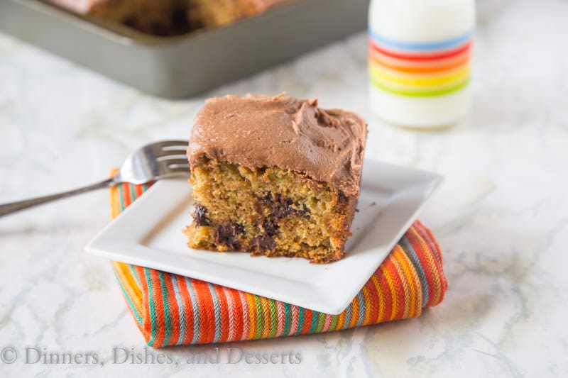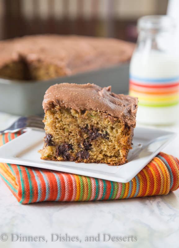 The cake is dense but still super tender and moist, with just a hint of cinnamon. It is perfect if you have zucchini sitting around and aren’t sure what to do with it. Make this chocolate chip zucchini cake and impressive everyone.