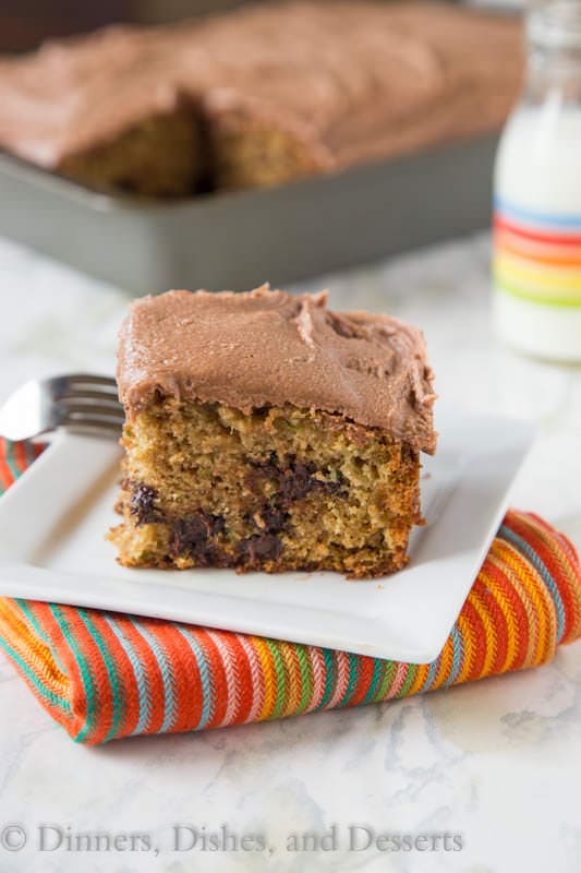 This moist and delicious Chocolate Chip Zucchini Cake is topped with rich, creamy chocolate frosting! It’s the perfect way to use up fresh zucchini and satisfy your sweet tooth at the same time. Easy to make and packed with chocolatey goodness, this is a crowd-pleasing dessert you’ll make all summer long.