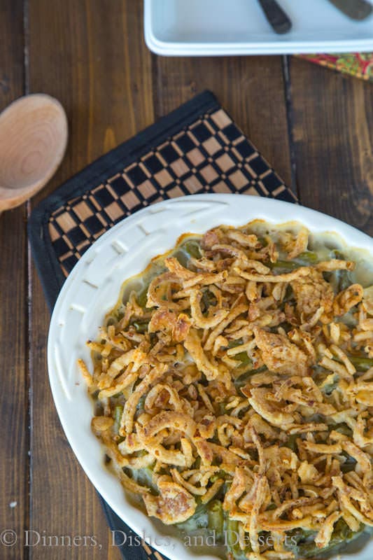 Green bean casserole from scratch is really easy to make, it takes only a couple minutes longer than using a can of condensed soup. And in my opinion makes it a thousand times better!