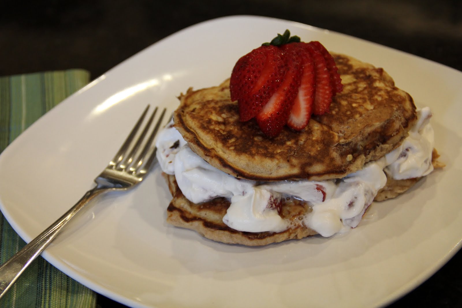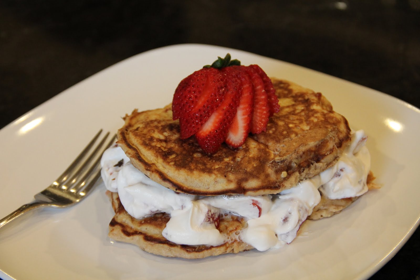 If you are looking to up your breakfast game, these pancakes are it! Light and fluffy pancakes that are perfect any time, plus you are topping them like strawberry shortcake! So if you like sweet breakfasts, look no further. These would be a great addition to brunch where you could just have the ingredients all set out separately, and people can assemble their own.