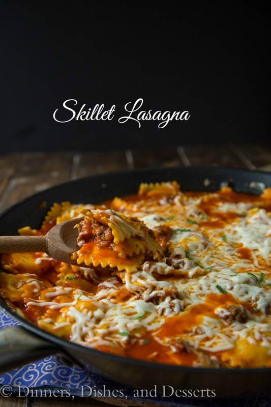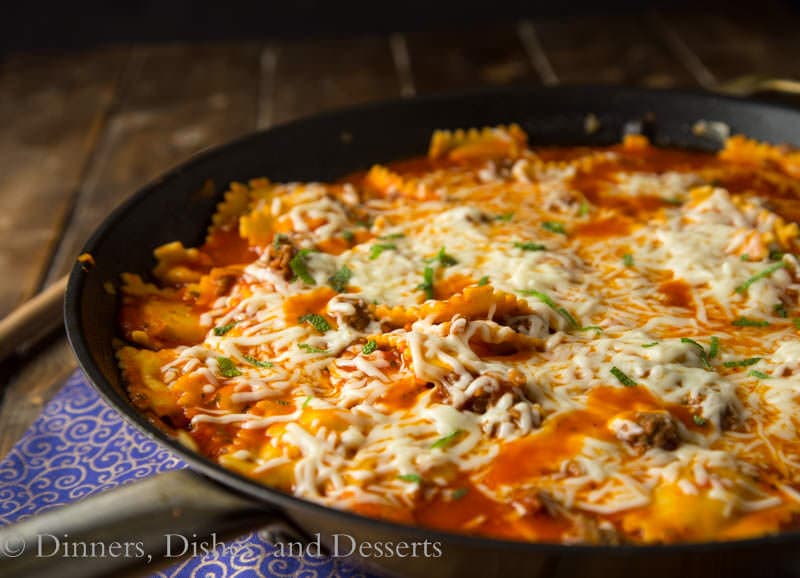 Quick and Easy Skillet Lasagna – Make lasagna perfect for a weeknight meal. Ravioli makes this ready in less than 30 minutes, and pure comfort food everyone will love.