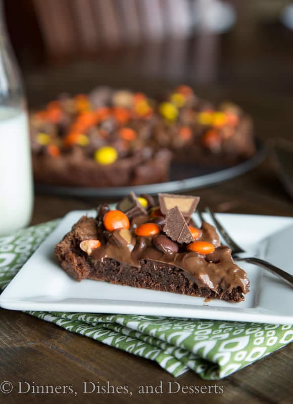 The only thing better than chocolate and peanut butter is turning that combo into this brownie pizza! I made it for dessert last night, and I caught my kids eating the leftovers for breakfast this morning. LOL