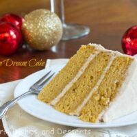 Pumpkin Dream Cake – Three layer pumpkin cake with a Cinnamon Butter Cream Frosting. Gorgeous, and perfect for any Holiday table.