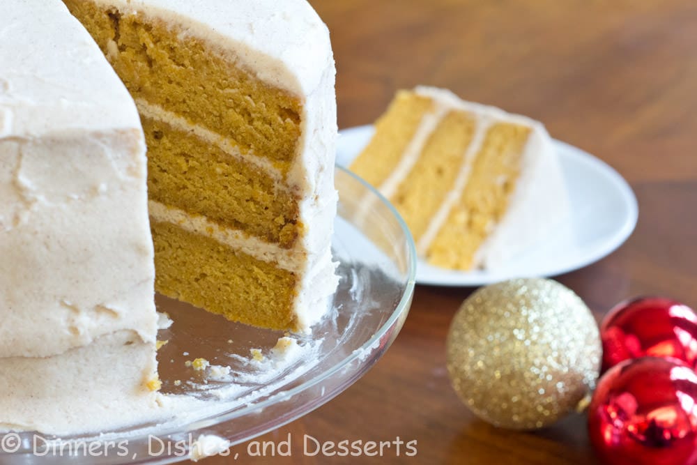 But this pumpkin spice cake is layered with a cinnamon buttercream frosting and over the top delicious! The frosting is the perfect pairing for the cake.
