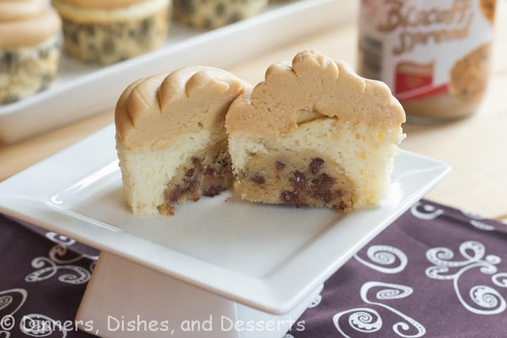 I love everything about these Erin, the hidden cookie dough inside makes these over the top! What a sweet surprise. And that frosting!! I love love loooove Biscoff! This is one killer cupcake.
