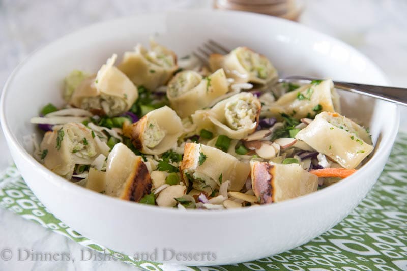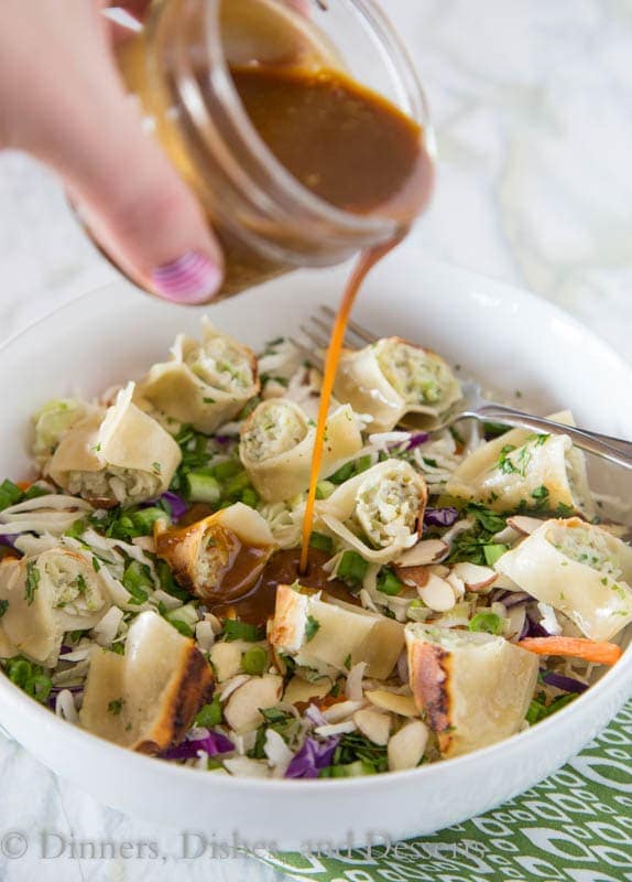 I’m not sure if my last comment went though, so I’m going to leave another one! 😉 I am seriously in love with this recipe. It’s genius to use potstickers in salad! So fun!