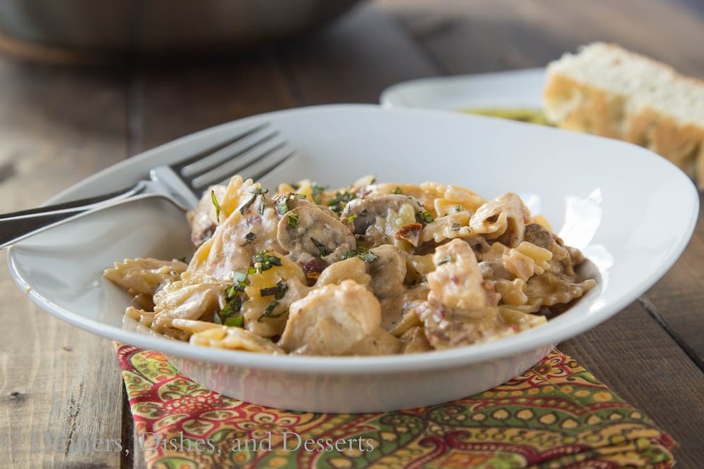 Pasta Milano Macaroni Grill Copycat – A homemade version of Macaroni Grill’s Pasta Milano. A creamy garlic and sundried tomato sauce, with chicken and mushrooms, over bowtie pasta