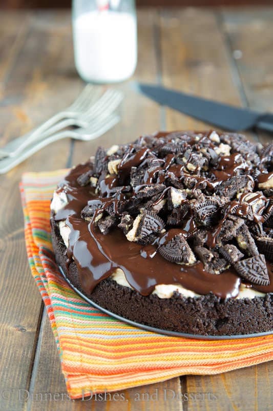 - Top with the rest of the crushed Oreo's. Let sit for 4 hours before slicing to serve.