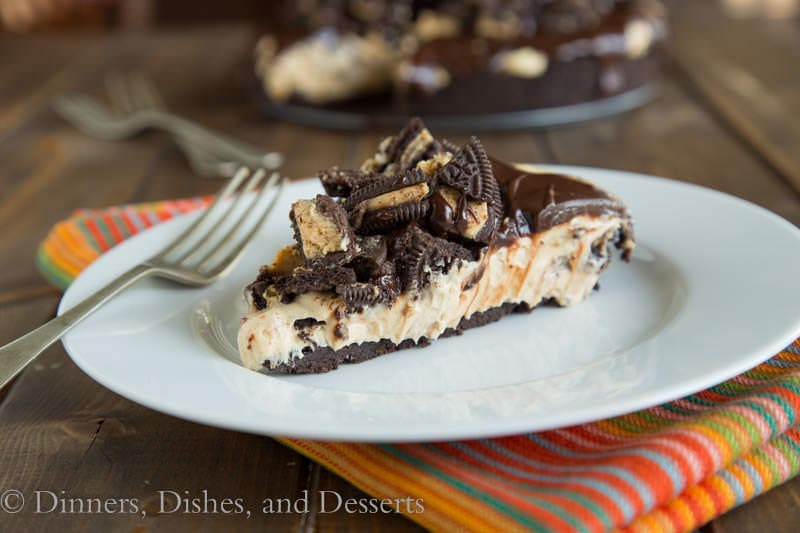 - In the stand mixer bowl, using a paddle attachment, beat together peanut butter, cream, cheese, and sugar until well combined. Using a spatula, gently fold in the whipped cream. Once well mixed, fold in the peanut butter cup Oreo cookie pieces. Pour into prepared crust. Set in fridge for 1 hour.