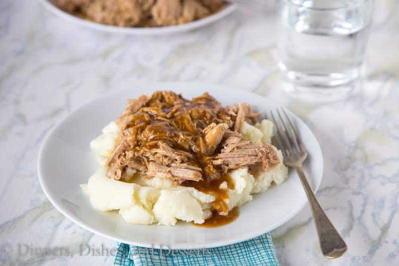 - Serve. Shred the pork and serve over mashed potatoes topped with gravy. Or you can serve in sandwiches, or alongside your favorite vegetables.